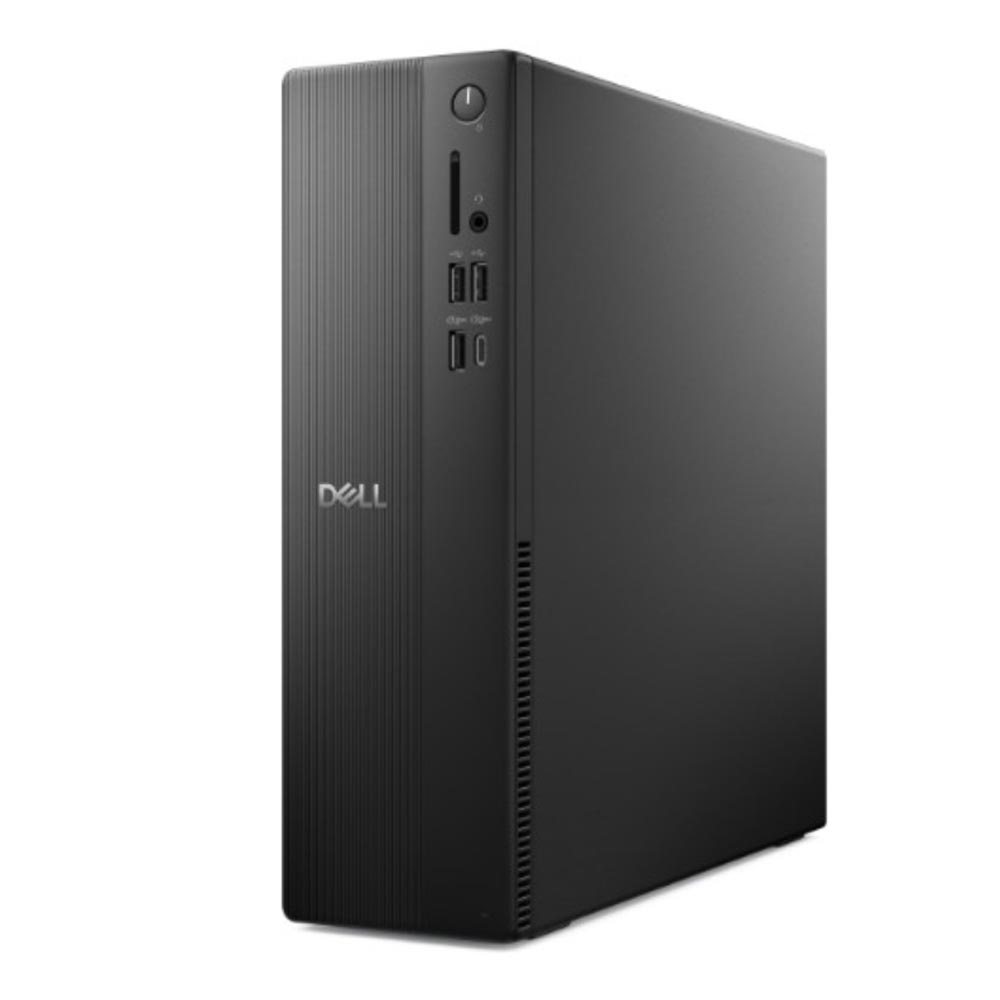 PC Dell Pro Slim Essential sở hữu kiểu dáng siêu mỏng (Slim) với chiều rộng chỉ 95 mm và trọng lượng nhẹ 3.49 kg. Kích thước này cho phép máy dễ dàng đặt gọn trên những chiếc bàn làm việc nhỏ hẹp hoặc dưới gầm bàn mà vẫn đảm bảo tính thẩm mỹ cao. Màu đen Raven Black truyền thống của Dell tạo nên vẻ ngoài chuyên nghiệp, bền bỉ, phù hợp với mọi không gian công sở hiện đại.